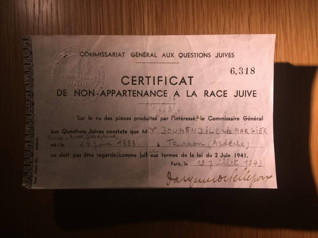 Je suis également touché par cette étoile jaune, tristement célèbre, et de voir qu’on a pu leur attribuer un « statut » en tant que juif ou encore produire des certificats de non-appartenance à la race juive…